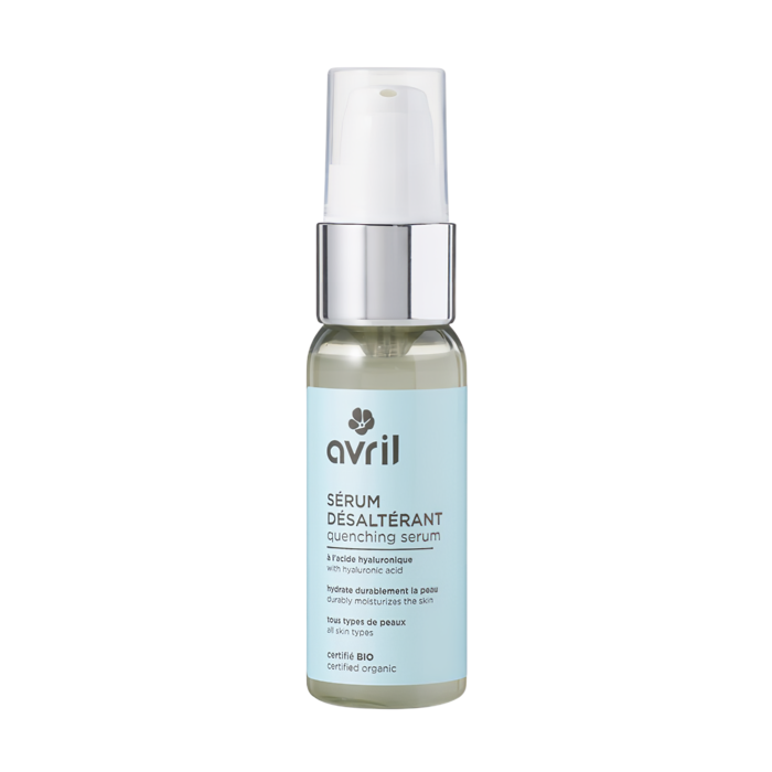Boostez l'hydratation de votre peau grâce au sérum désaltérant certifié bio Avril : l'acide hyaluronique et l'aloe vera bio combinent leurs vertus pour vous offrir une peau assouplie et hydratée, le tout dans une texture ultra légère..