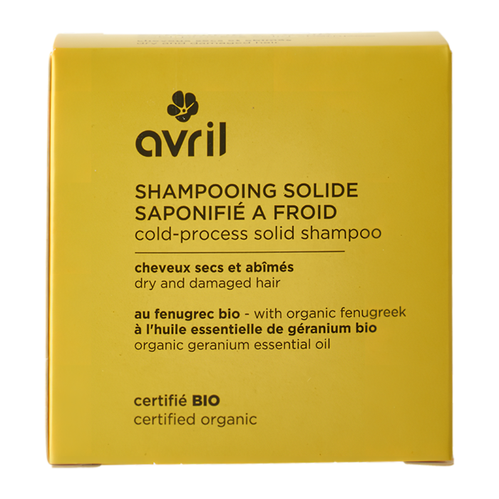Le shampooing solide saponifié à froid Cheveux secs et abîmés certifié bio Avril est fabriqué de manière traditionnelle : les huiles ainsi utilisées gardent toutes leurs vertus pour prodiguer un véritable soin, en plus du nettoyage. Composé de fenugrec bio, ce shampooing convient aux cheveux secs..