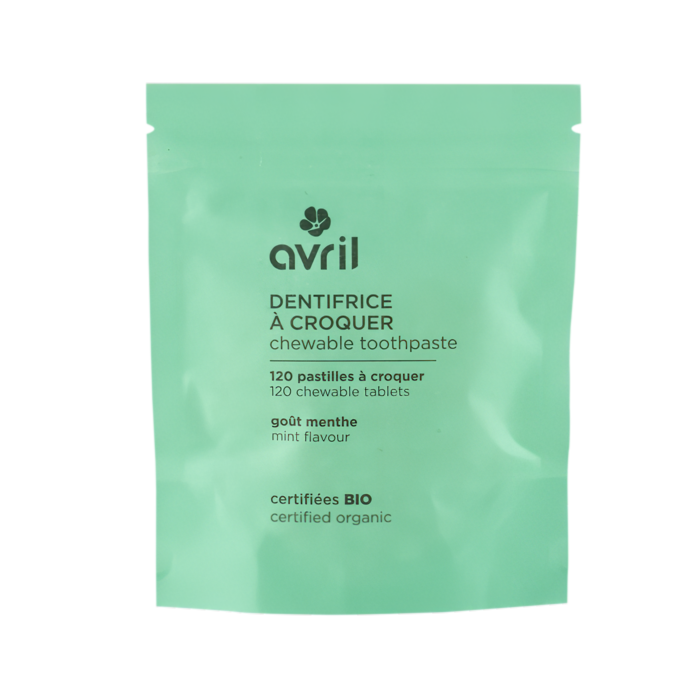 Faites entrer un nouveau geste dans votre routine hygiène : croquez dans les pastilles de dentifrice certifiées bio Avril puis brossez vos dents comme d'habitude.
