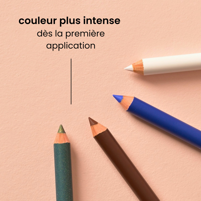 Ce crayon, fabriqué en France, est certifié bio. Il est formulé avec 100 % d'ingrédients d'origine naturelle notamment l'huile de graine de ricin bio qui apporte une protection à la zone fragile du contour de l'œil.