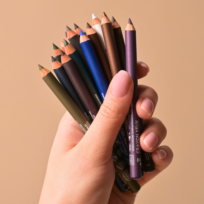 Ce crayon, fabriqué en France, est certifié bio. Il est formulé avec 100 % d'ingrédients d'origine naturelle notamment l'huile de graine de ricin bio qui apporte une protection à la zone fragile du contour de l'œil.