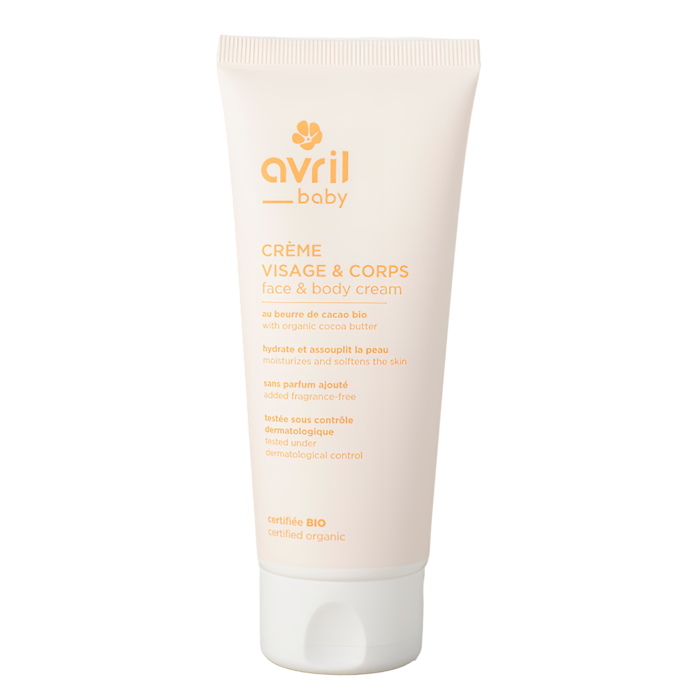 Vous allez craquer pour la crème visage & corps bébé certifiée bio Avril ! Elle nourrit, assouplit et protège la peau de bébé tout en laissant une odeur addictive de beurre de cacao bio !.