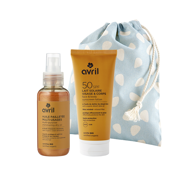 1. Lait solaire SPF50 Indispensable lors des journées ensoleillées, le lait solaire SPF 50 certifié bio Avril agit comme un bouclier contre les rayons UVA et UVB. Sa texture légère, fluide et non collante pénètre rapidement sans laisser de film gras.