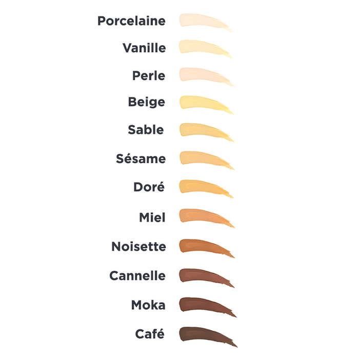 Comment choisir votre couleur de fond de teint ? Deux questions à vous poser :1) Quelle est la hauteur de ton de ma peau ?La hauteur de ton détermine la luminosité, de plus clair à plus foncé.La gamme de fond de teint certifié bio Avril est composée de 12 teintes dans différentes hauteurs de ton : TRÈS CLAIRPorcelaineVanillePerleCLAIR BeigeSableMEDIUMSésameDoré MielMEDIUM FONCÉNoisetteFONCÉCannelleTRES FONCÉMokaCafé2) Quel est le sous-ton de ma carnation ?Pour connaître les sous-tons de votre carnation, quelques astuces :A la lumière naturelle, regardez attentivement votre peau sans maquillage, vous pourrez distinguer la hauteur de ton de votre peau et les sous-tons.Vous pouvez également vous référer aux veines comme elles apparaissent à fleur de peau :Si elles sont plutôt bleu-vert = les sous-tons de votre peau sont neutresSi elles sont plutôt vertes = les sous-tons sont dorés ou oliveSi elles sont plutôt bleues = les sous-tons sont plutôt froidsAutre astuce, quel bijou choisissez-vous et quel métal vous met le plus en valeur ?L’or = sous-ton doré et olivâtreL’argent = sous-ton froidPeu importe, les deux me vont = neutreLes fonds de teint certifiés bio Avril aux sous-tons chauds sont :Vanille, Beige, Doré, Miel, NoisetteLes fonds de teint certifiés bio Avril aux sous-tons froids sont :Porcelaine, Perle, CannelleLes fonds de teint certifiés bio Avril aux sous-tons neutres sont :Sable, Sésame, Moka, Café