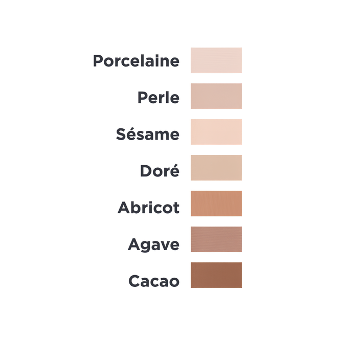 Talc, Amidon de tapioca*, Kaolin (argile), Coco-caprylate/caprate, Huile de graine de jojoba*, Beurre de karité*, Glyceryl caprylate, Stéarate de zinc, Tocophérol (Vitamine E), Glyceryl undecylenate, Huile de graine de tournesol, Peut contenir :, Oxyde de fer, Dioxyde de titane (Colorant), Tétraoxyde de fer, Trioxyde de fer