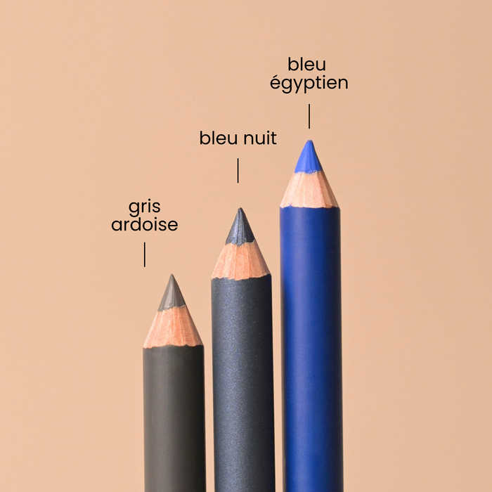 Ce crayon, fabriqué en France, est certifié bio. Il est formulé avec 100 % d'ingrédients d'origine naturelle notamment l'huile de graine de ricin bio qui apporte une protection à la zone fragile du contour de l'œil.