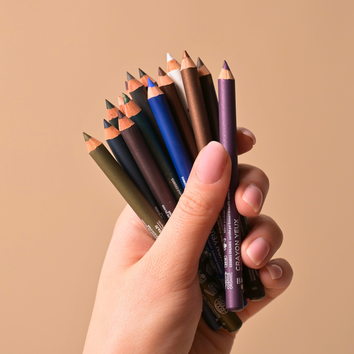 Ce crayon, fabriqué en France, est certifié bio. Il est formulé avec 100 % d'ingrédients d'origine naturelle notamment l'huile de graine de ricin bio qui apporte une protection à la zone fragile du contour de l'œil.