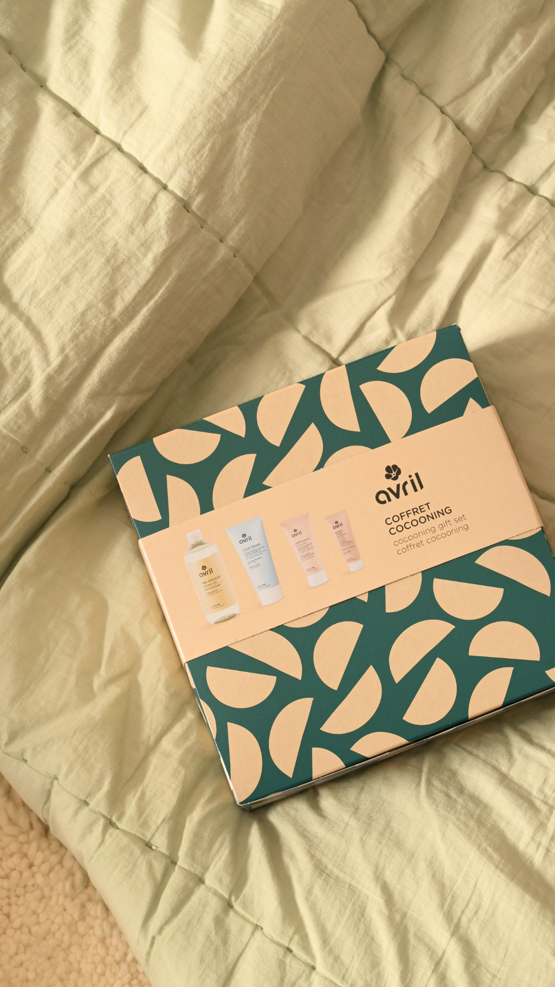 Le Coffret Cocooning Avril est le cadeau parfait pour offrir un moment de douceur et de réconfort, avec des produits bio respectueux de votre peau.