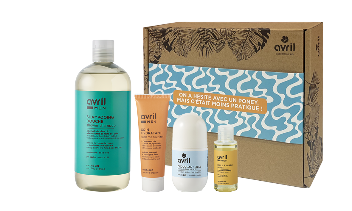 Composé d'une huile à barbe, d'un soin hydratant homme, d'un déodorant bille et d'un shampooing douche 3 en 1