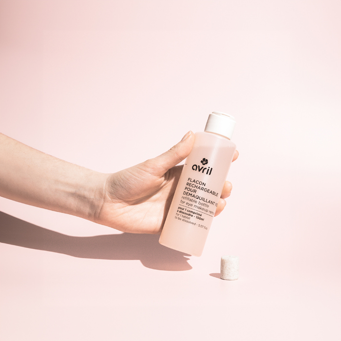 Mode d'emploi : Ajoutez le comprimé dans votre flacon rechargeable pour Démaquillant yeux Avril et ajoutez de l'eau chaude jusqu'au repère. Laissez le bouchon ouvert et attendez 12h. Refermez le bouchon puis secouez pour homogénéiser. Votre démaquillant yeux est prêt à l'emploi !