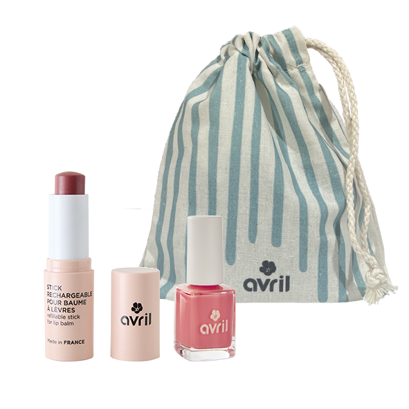 Composé d'un blush pour ongles et d'un stick lèvres rechargeable