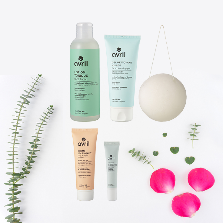 Cette routine complète contient : un gel nettoyant, une éponge konjac, une lotion tonique, une crème jour & nuit et un soin anti-imperfections.