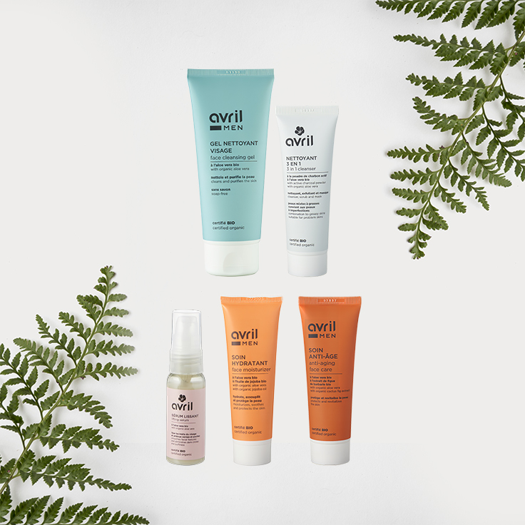 Cette routine complète contient : un gel nettoyant visage homme, un sérum lissant, un soin hydratant homme pour le jour, un soin anti-âge pour la nuit et un nettoyant 3 en 1 (nettoyant, gommage, masque).